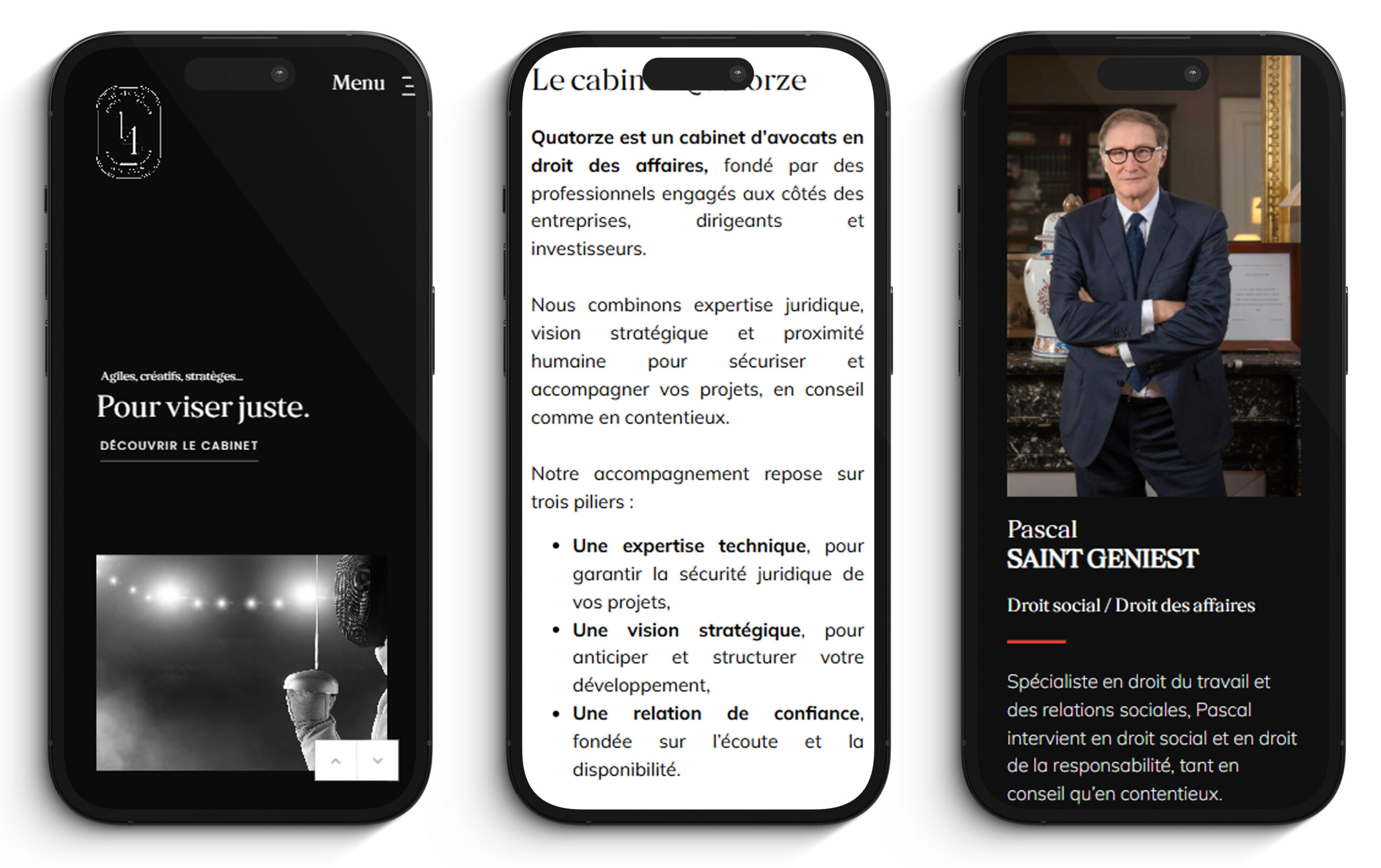 La philosophie de Quatorze repose sur trois piliers : précision, anticipation et disponibilité. Cette vision guide l’ensemble de son équipe dans un objectif commun — défendre, conseiller et accompagner durablement ses clients vers la réussite.